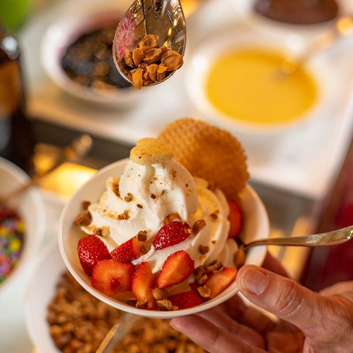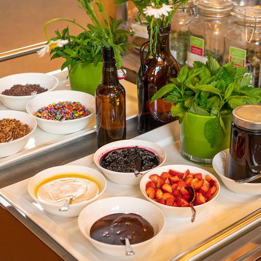 The dessert station "Naschkatzl" offers all warm sweet dishes extended from 10:00 AM to 4:00 PM.