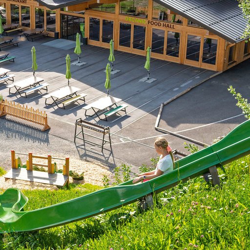 Not just the culinary art features best local raw materials and craftsmanship, but also the entire building. Located directly at the bottom station of the Lumberjack Shuttle, comfortable seating on two light-flooded floors with an open gallery, huge winter gardens, large terraces and benches around cosy stoves await you at the LUMBERJACK.