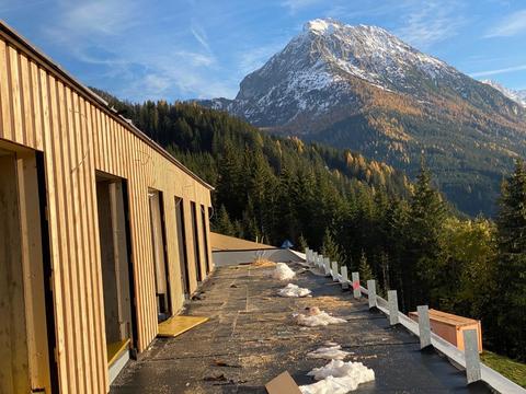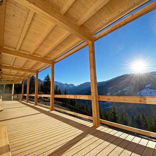 While planning the LUMBERJACK, we deliberately combined traditional elements of alpine architecture with the latest technology. The protruding saddle roof of a classic hut defies the winter's snow masses since generations and offers a pleasant shade around the building at the same time.