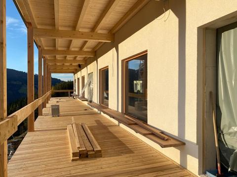 Unlike tiny windows from times when glass was still rare and its heat-insulating properties limited, insulating three-layer glazing allow us to implement large-area glass fronts. They bring loads of light inside and provide a great view on the beautiful mountain panorama of the Kleinarl valley.