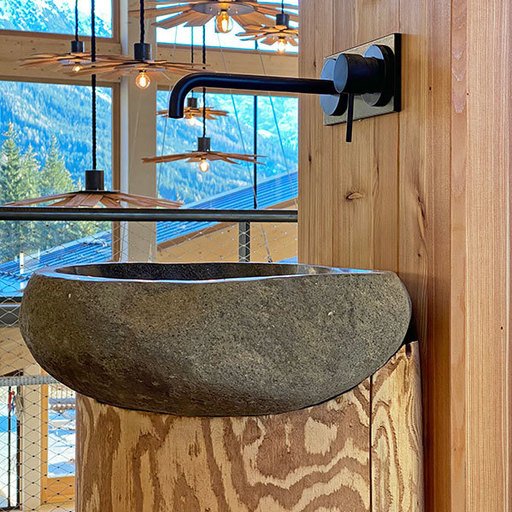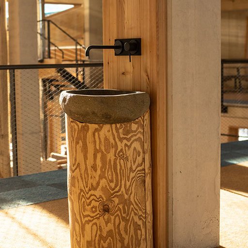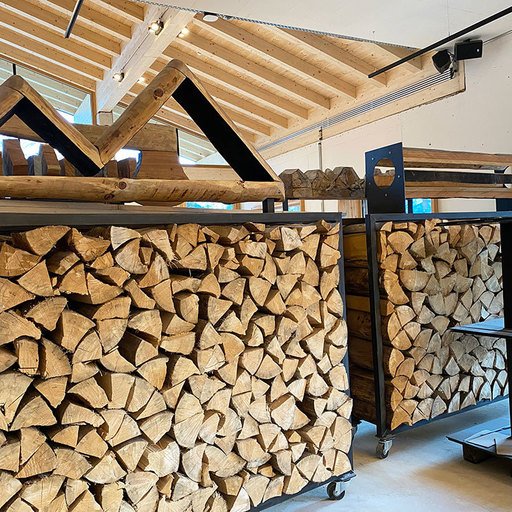 At LUMBERJACK the traditional matter wood and highest carpentry skills meet the stability and the modern look of constructive concrete and black steel.