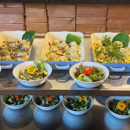 We serve table buffets with three or five courses for flexitarians, vegetarians, and vegansto eat together family style - from pots and pans. Perfect for a special lunch break or a fine dinner experience.
